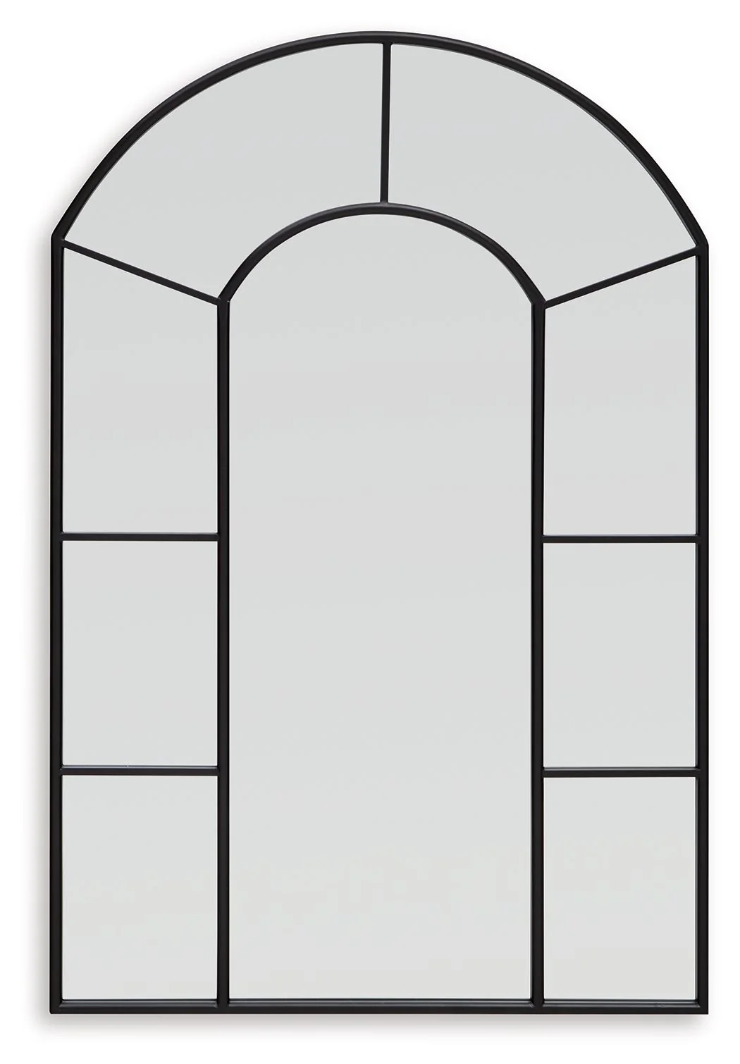 This mirror takes a classic wall accent and upgrades it with simple details. An arched design and paneled perimeter are framed with metal in a versatile black finish. Whether your room is casual or contemporary, this mirror effortlessly reflects the mood of your space.