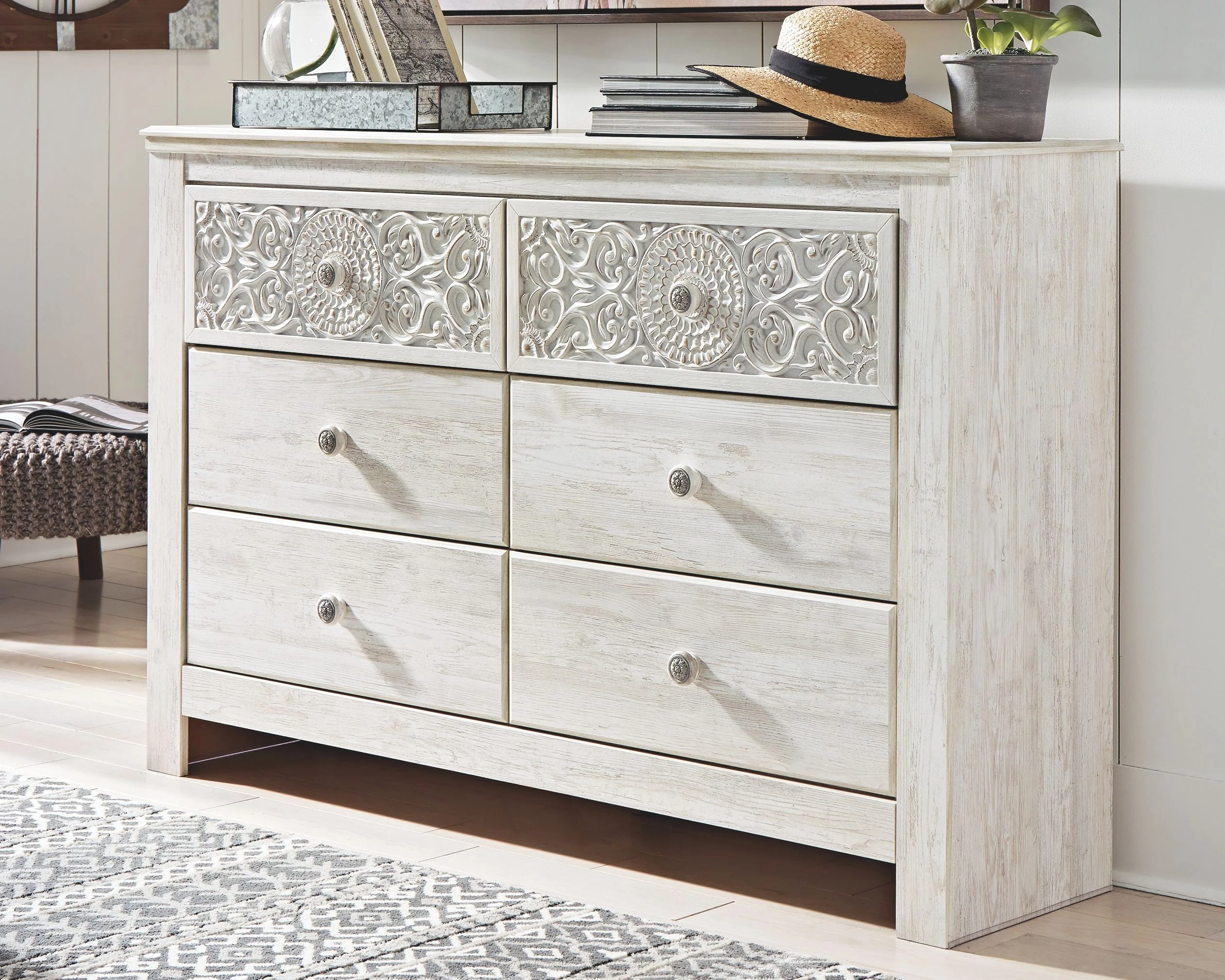 Paxberry - Six Drawer Dresser - Medallion Drawer Pulls - Whitewash